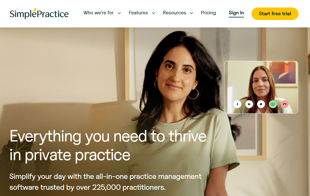 👉 SimplePractice is the market leader with over 225,000 practitioners, offering a modern, user-friendly interface and comprehensive features including integrated telehealth and a robust client portal. The platform excels at streamlining practice management with automated reminders, insurance billing, and mobile apps for both clinicians and clients. However, since its parent company’s acquisition by Vista Equity Partners, some users have expressed concerns about customer support quality, and essential features often require upgrading to higher-priced tiers ($49–99/month).