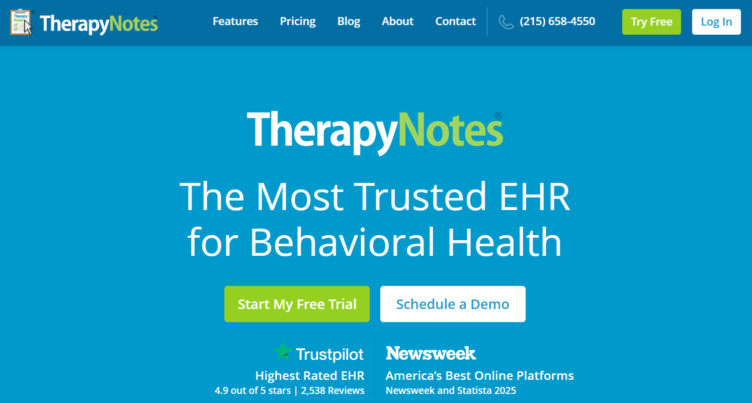 TherapyNotes presents itself as a solution built specifically for mental health workflows, with a focus on ease of use and reliability.