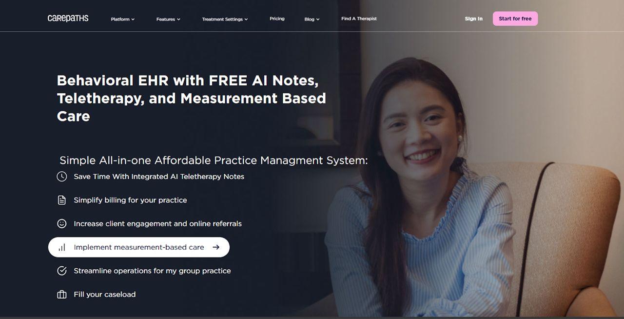 Additionally, CarePaths offers a completely free Measurement-Based Care tier for up to 30 clients per clinician, allowing practices to track evidence-based outcomes without any financial commitment.